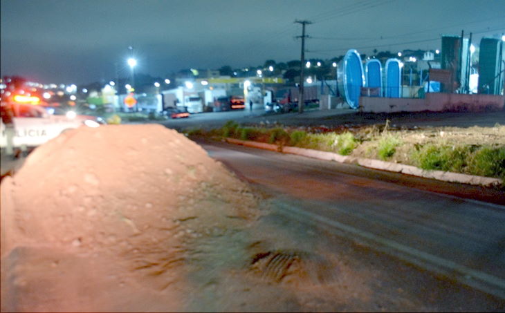 Moradores da localidade se reuniram e tentaram interditar a rodovia após uma caçamba derramar areia sobre a via. Outros obstáculo já estavam sendo providenciados quando o policiamento chegou e impediu.