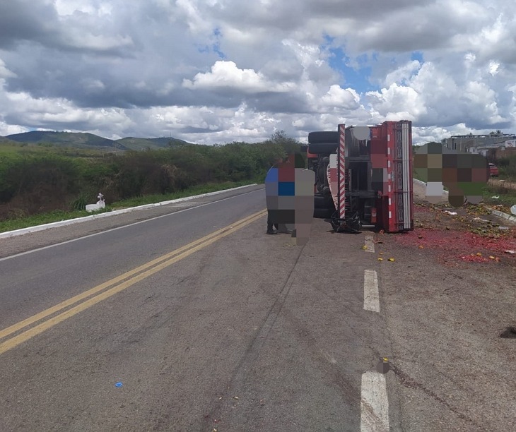 MOTORISTA PASSA MAL E CAPOTA CAMINHÃO NA BR-232, EM PESQUEIRA