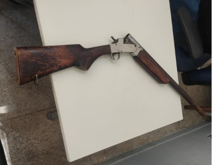 A espingarda foi localizada, o homem levado para delegacia e autuado por posse ilegal de arma de fogo.