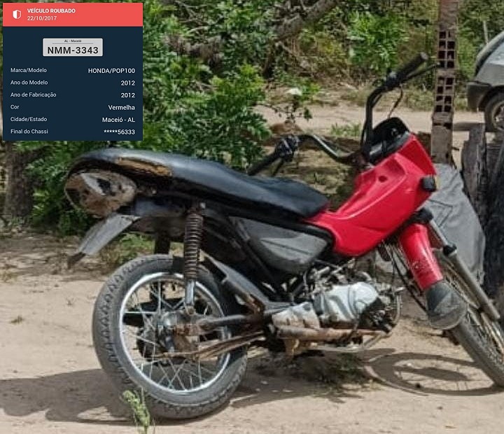 Ainda segundo a polícia, ao verificar a numeração do chassi foi percebido sinais de adulteração, porém através dos números do motor foi possível identificar a motocicleta sendo de modelo Pop 100, cor vermelha, com placa NMM-3343, contendo queixa de roubo em outubro de 2017, sendo ela registrada na Capital Maceió, em Alagoas. O jovem adolescente disse que havia comprado a motocicleta pelo valor de R$ 1.400,00 (mil e quatrocentos reais).