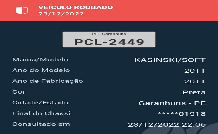 Uma motocicleta modelo Soft de cor preta com placa PCL-2449 foi furtada durante à tarde desta sexta-feira, 23, quando se encontrava estacionada nas proximidades de uma academia na Rua Padre Pedro Pacífico, no centro de Garanhuns.