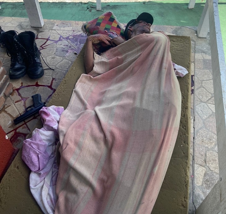 Um simulacro de arma de fogo e um punhal foram encontrados ao lado do corpo
