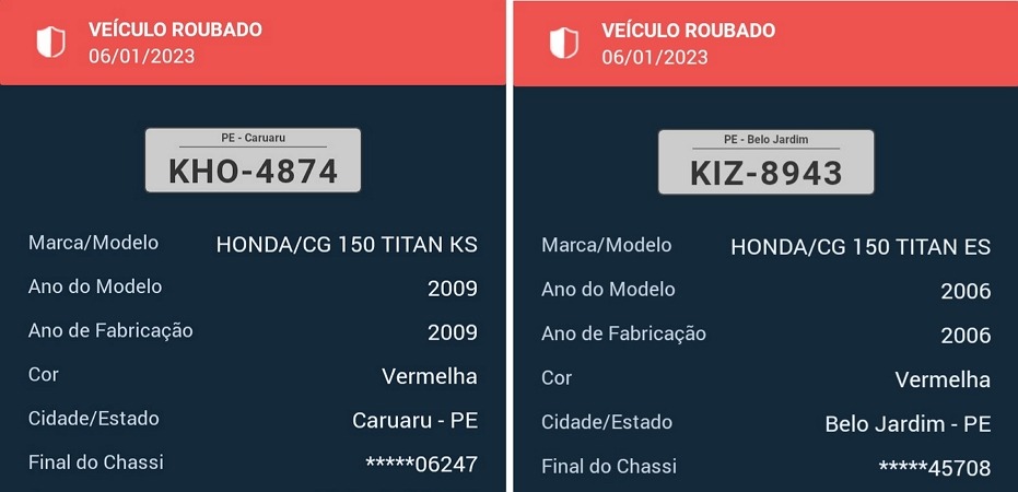 Horas depois, no mesmo bairro, mais uma motocicleta foi furtada de mesmo modelo e mesma cor da outra anterior, sendo esta de placa KIZ-8943. A vítima também relatou que foi a mesma festa, também deixou a moto estacionada próxima do evento e em determinado momento percebeu que ela havia sido furtada.