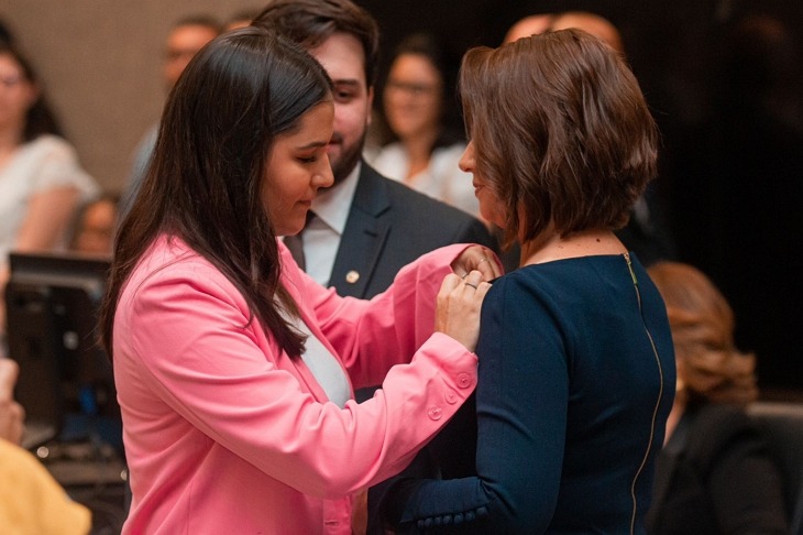 A agora parlamentar de fato, conhecida como “A voz do Agreste”, esteve nesta cerimônia acompanhada dos seus pais, o empresário José de Almeida e sua mãe, Dona Josefa. À sua filha Sofia, coube a atribuição de aplicar o broche (pin) na vestimenta da agora deputada.