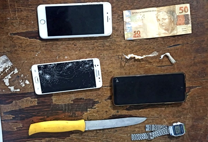 O efetivo do Gati foi acionado pela Central de Operações do 9º BPM após informe que transeuntes haviam sido assaltados por três elementos, um deles armado com uma faca, no Loteamento Jardim Petrópolis, em Garanhuns. Durante diligências na localidade, o policiamento encontrou os suspeitos e com eles foram localizados aparelhos celulares das vítimas, 06 pedras de crack e uma faca peixeira, além da quantia de R$ 50,00.