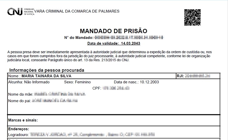 Uma jovem de 19 anos foi presa pelas polícias militar e civil durante à tarde desta quarta-feira, 15, na Praça da Bíblia, Centro, Joaquim Nabuco/PE. Maria Tainara teve a prisão decretada pela Vara Criminal da Comarca de Palmares após descumprir ordem da justiça. Ela não comunicou ao judiciário o motivo pelo qual a bateria de sua tornozeleira eletrônica, que fazia seu monitoramento, não foi mais carregada. Assim, tornou-se foragida da justiça e teve a prisão decretada.