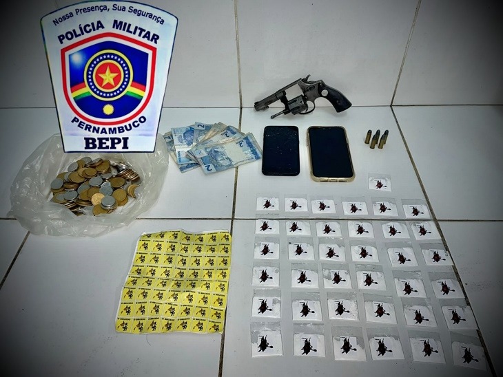 TRAFICANTE FOI PRESO E COCAÍNA E REVOLVER APREENDIDO PELO BEPI, EM ÁGUAS BELAS