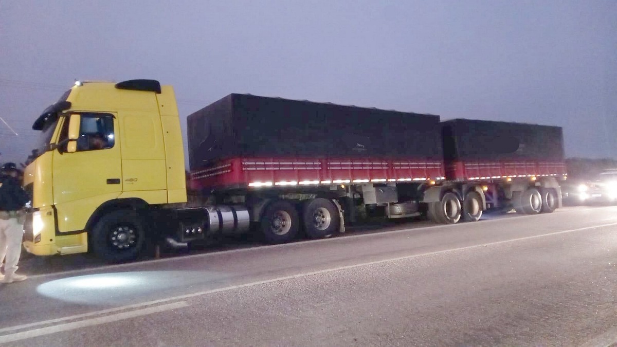 Durante uma fiscalização de segurança viária, policiais abordaram uma carreta e constataram que a nota fiscal apresentada era inválida. Além disso, o veículo transportava um peso maior do que o declarado na documentação.