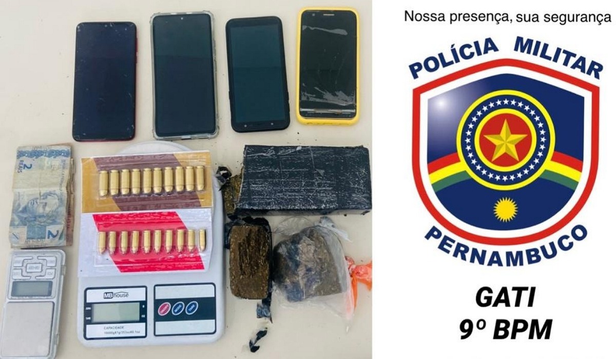O efetivo do GATI apreendeu drogas e munições com um casal suspeito de traficar no Mercado Público 18 de Agosto, no centro de Garanhuns, nesta tarde de terça-feira, 11. O elemento de 27 anos informou que mora na Rua Mariápolis, já a mulher, na Rua Conselheiro João Alfredo, ambas no bairro Magano, em Garanhuns.