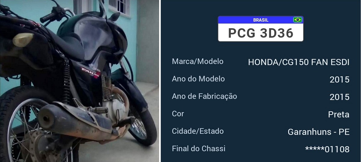 Um morador da Cohab III em Garanhuns teve sua motocicleta tomada de assalto no fim da tarde de sábado, 15, nas proximidades da caixa d’água, no mesmo bairro. A moto roubada tem placa PCG-3D36, cor preta e modelo CG 150 Fan. Dois elementos em outra moto praticaram o roubo armados com um revólver.