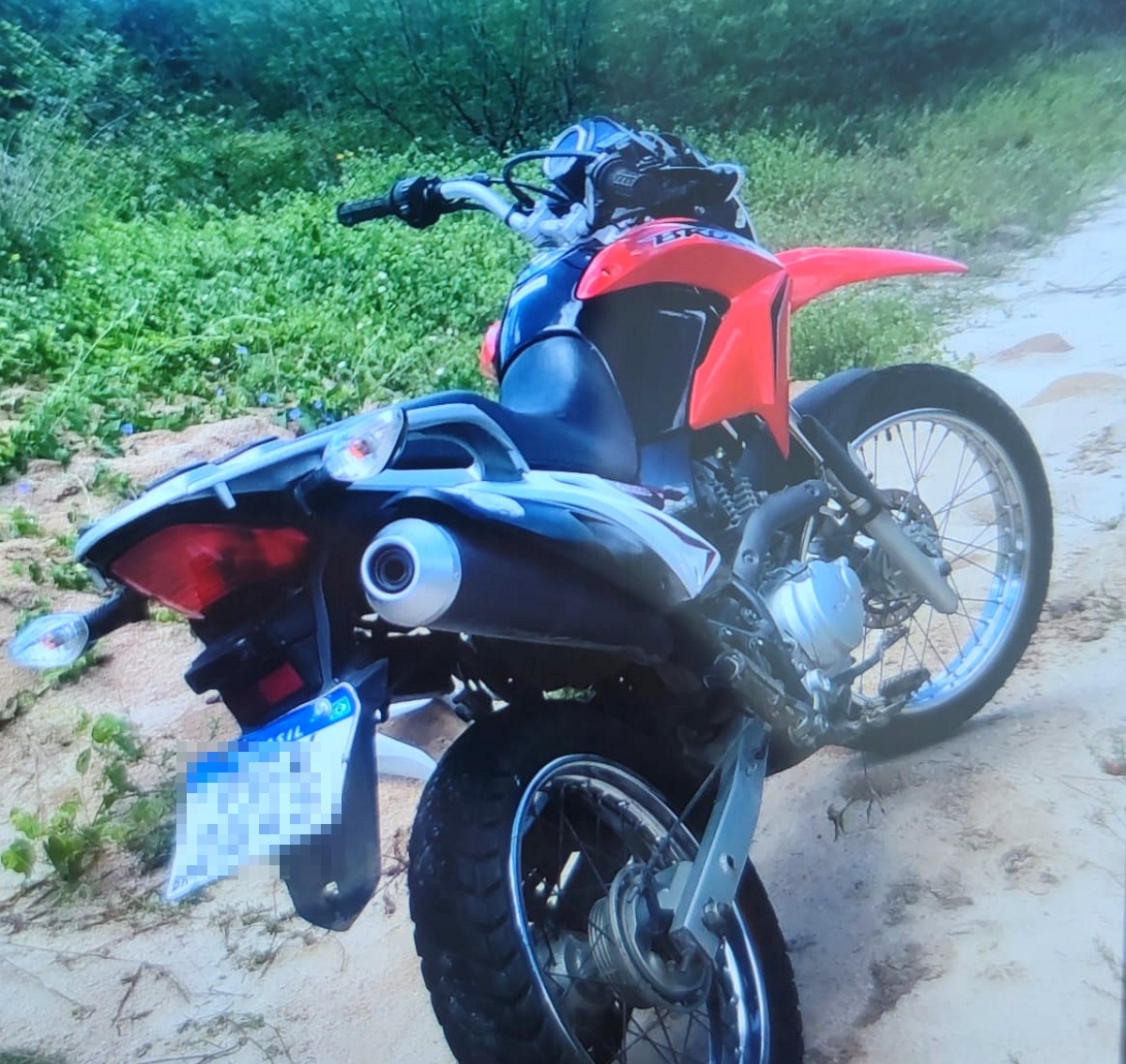 Ainda segundo a polícia, foi obtido informações que no loteamento havia uma motocicleta modelo Bros em estado de abandono, uma equipe policial foi ao local sendo constatado que a motocicleta era roubada. Ela havia sido tomada de assalto no último dia 12 por três elementos armados e encapuzados.