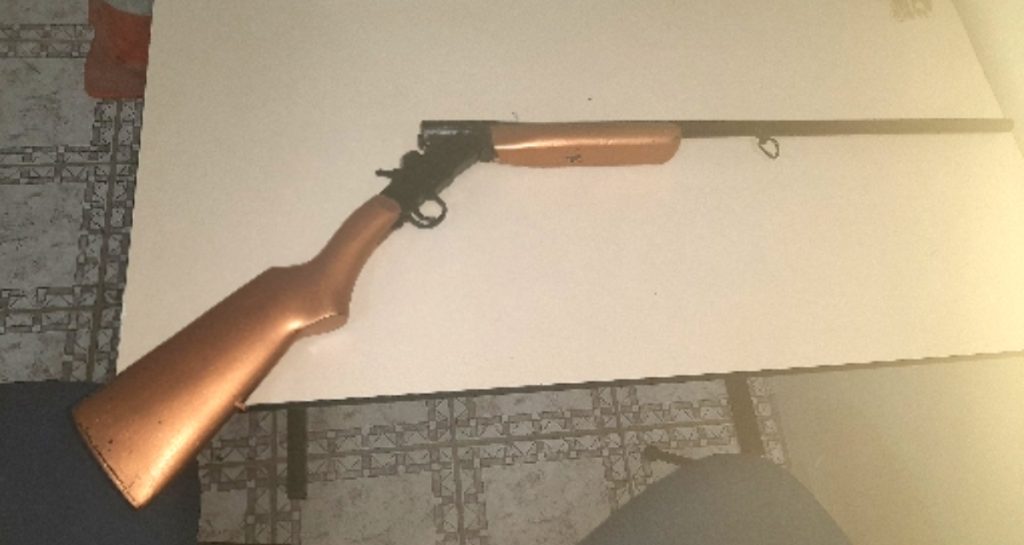 Conforme a Polícia Militar, equipes policiais realizavam rondas quando avistaram um elemento com uma espingarda na mão, foi dado ordem para que ele entregasse a arma, mas ele empreendeu fuga para dentro de um matagal, o policiamento fez buscas no local e conseguiu localizá-lo e apreender a arma.