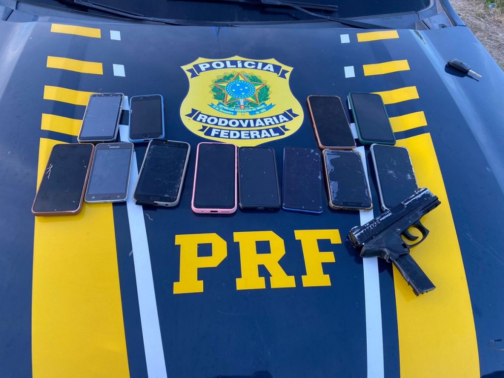 PRF DETÉM SUSPEITO DE ASSALTO COM 13 CELULARES, CARRO ROUBADO E SIMULACRO DE PISTOLA NO CURADO