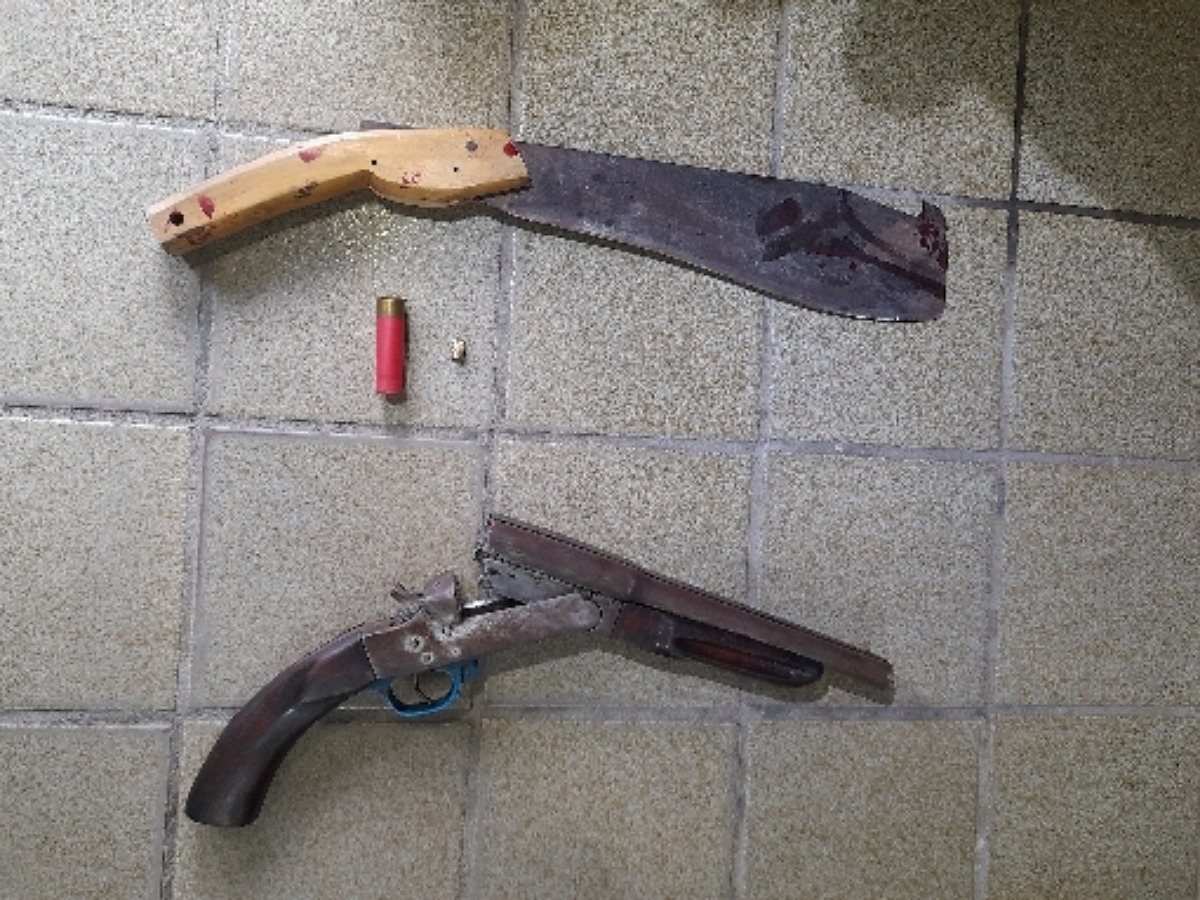 No momento dos disparos a vítima mesmo alvejada armou-se entrou em luta corporal com os elementos que deixaram cair a espingarda e fugiram.