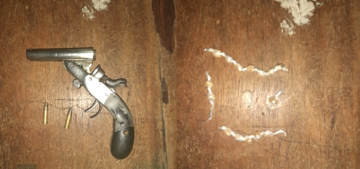 Ainda segundo a polícia, foi obtido informe que o jovem havia jogado uma bolsa ao lado da casa, logo que percebeu a chegada das viaturas. Os policiais fizeram uma busca no local e encontraram a bolsa contendo 16 pedras de crack e uma garrucha municiada.