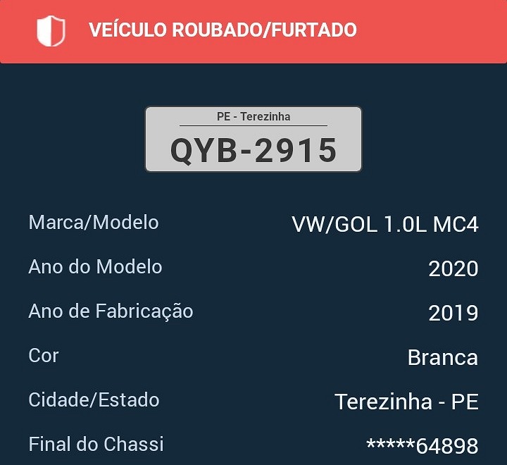 Três elementos armados e utilizando um HB20 na cor marrom praticaram um assalto durante à tarde desta terça-feira, 20, numa fazenda do Sítio Pedra de Fogo, no município de Terezinha/PE. Os criminosos roubaram um carro modelo Gol na cor branca com placa QYB-2915, celulares, relógios, dinheiro entre outros diversos objetos da casa.