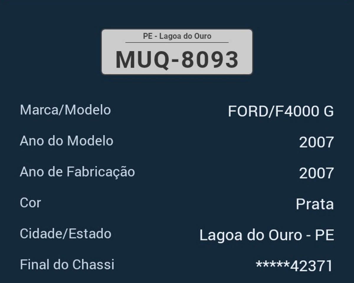 Foi furtado um caminhão modelo F-4000 na cor prata com placa MUQ-8093. Ele estava estacionado na frente de uma residência carregado com frutas e verduras na Rua Capitão José Jardim no bairro Boa Vista em Garanhuns durante à madrugada desta terça-feira, 27.