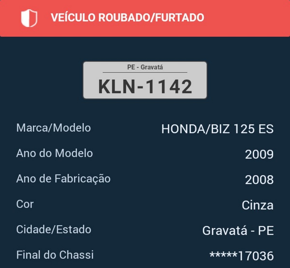 Dois elementos numa moto praticaram um assalto no início da noite de sexta-feira, 23, numa estrada do Sítio Serra Verde em Ibirajuba/PE. Eles roubaram uma Biz 125 na cor cinza com placa KLN-1142, dinheiro, celulares, documento e cartões de créditos.