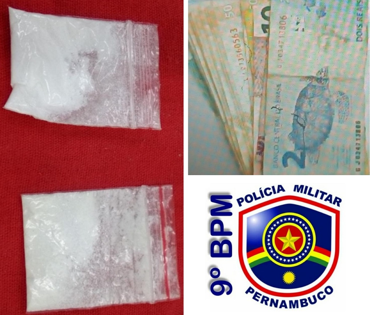 Policiais militares do 9º BPM apreenderam duas porções de cocaína, R$ 2.087,00 e 02 celulares na tarde de sexta-feira, 9, na Avenida Santo Antônio, no centro de Garanhuns. Os materiais estavam na posse de dois elementos que entraram em atitude suspeitas ao avistarem o policiamento.