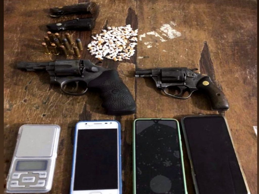 Os militares realizavam a Operação Combate ao CVLI, quando abordaram Sandriel Pereira da Silva, de 23 anos e Marcos Laurentino da Silva, de 42 anos, com eles foram encontrados dois revólveres calibre 38 e 11 munições, 103 pedras de crack, três aparelhos celulares, uma balança de precisão e dois cabos de revólveres.