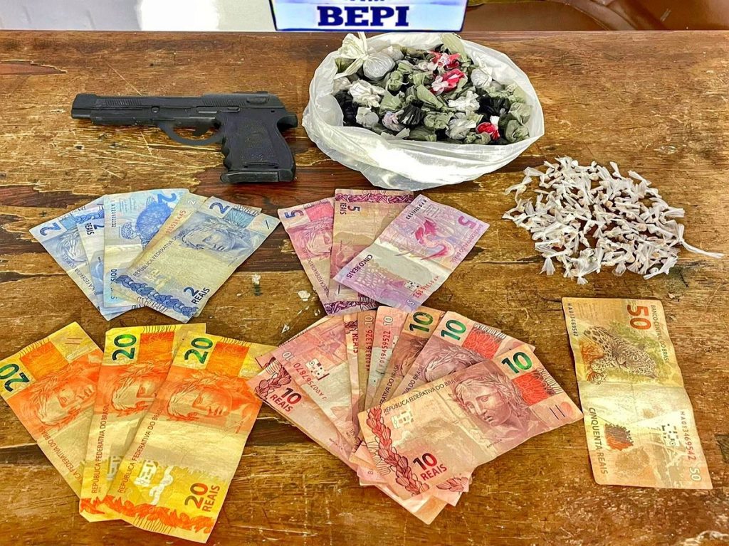 Com a família do tráfico foi apreendido um simulacro de pistola, 150 papelotes de maconha, 125 pedras de crack, e R$ 255,00 Reais apurado com a venda das drogas.