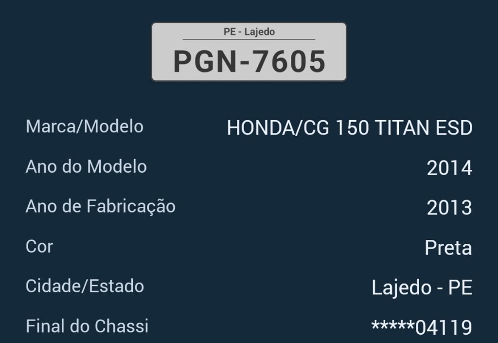 A vítima informou que trafegava em sua moto Honda CG-150, cor preta, placa PGN-7605, quando dois elementos atravessaram na estrada e começaram a efetuar disparos de arma de fogo obrigando-a a parar.