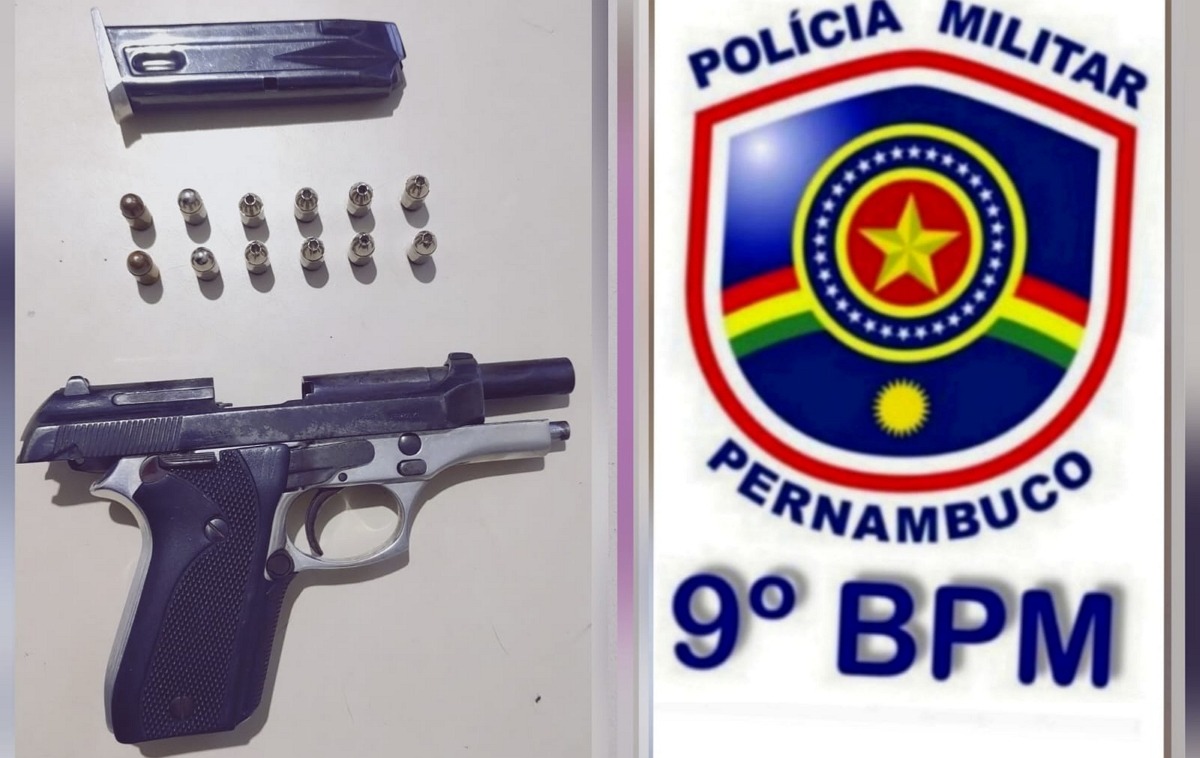 Os policiais da ROCAM apreenderam a pistola calibre 380 municiada no fim da tarde de terça-feira, 11, após receberem informações de que um indivíduo estava armado em uma academia no bairro Heliópolis, em Garanhuns. O suspeito foi localizado e entregou a arma, que estava escondida no carro, após ser seguido pelos policiais.