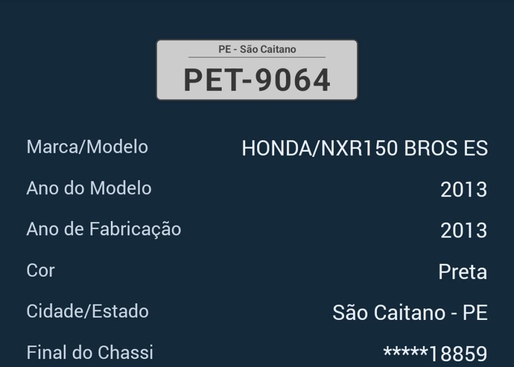 Uma moto Honda Bros, cor preta, placa PET-9064, foi furtada na madrugada desta terça-feira (8), no município de São Caetano, no Agreste.