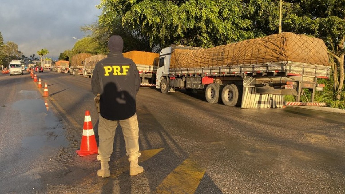 A Polícia Rodoviária Federal (PRF) intensificou as fiscalizações de trânsito na região de Garanhuns, no agreste pernambucano, nesta terça (08). Foram 86 veículos detalhadamente vistoriados pelos policiais e, deste total, 50 eram de carga. O excesso de peso foi observado em 14 deles, somando mais de 40 toneladas de excesso. Em uma das ocorrências registradas, os agentes flagraram pai e filho transportando cerca de 6 toneladas de carga em excesso. O que chamou a atenção é que um dos caminhões era conduzido por um jovem de 20 anos que não possuía Carteira Nacional de Habilitação (CNH).