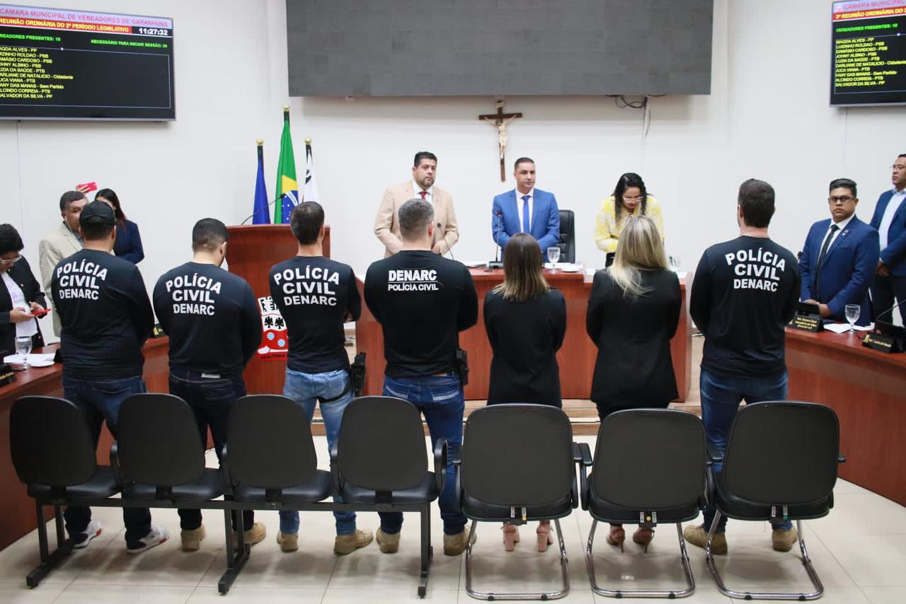 O delegado Paulo Bicalho e a 8ª DENARC Garanhuns foram homenageadas durante uma sessão na Câmara de Vereadores de Garanhuns, na manhã desta quarta-feira (16).
