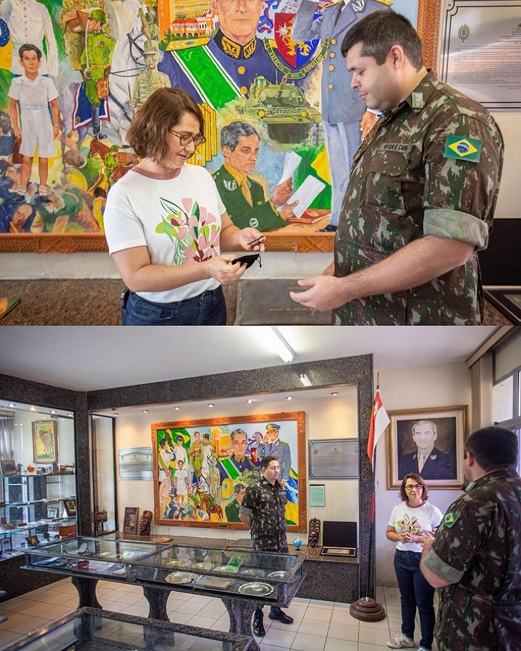 EXÉRCITO – Na sexta-feira (01/9), a visita foi à 10ª Companhia de Engenharia e Combate do Exército Brasileiro em São Bento do Una. No local funciona o Espaço Cultural Ministro Zenildo Zoroastro de Lucena, dedicado a preservar a memória desse respeitado general natural de São Bento e que foi também Ministro do Exército. Recebida pelo Capitão Ferraz, comandante interino da unidade e pelo Sargento Leonardo Vieira, a parlamentar escutou dos militares a solicitação de apoio para captação de recursos que visam a ampliação do acervo do espaço, composto por livros e peças que contam a história daquela importante Organização Militar. Com estas melhorias, o local possibilitará a visitação pública.