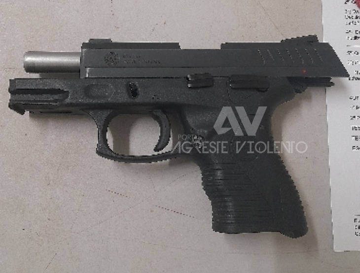 Ele foi conduzido para a delegacia de plantão e autuado por Porte Ilegal de Arma de Fogo.