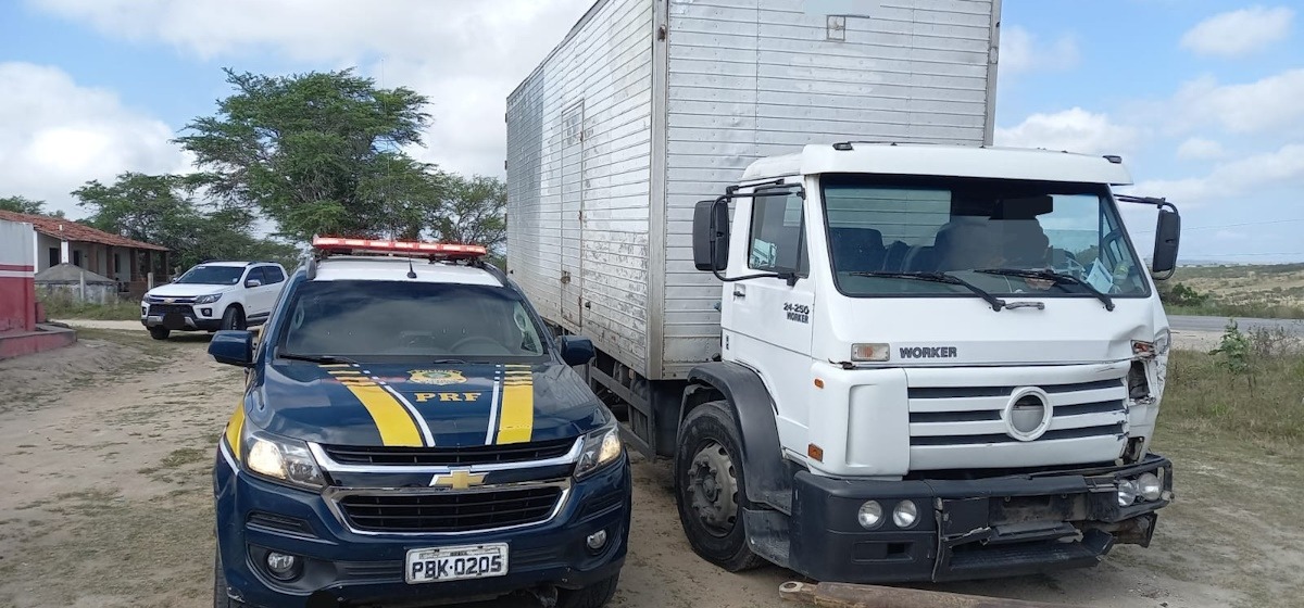 Caminhão que transportava a mercadoria foi localizado após se envolver em colisão com viatura da PM