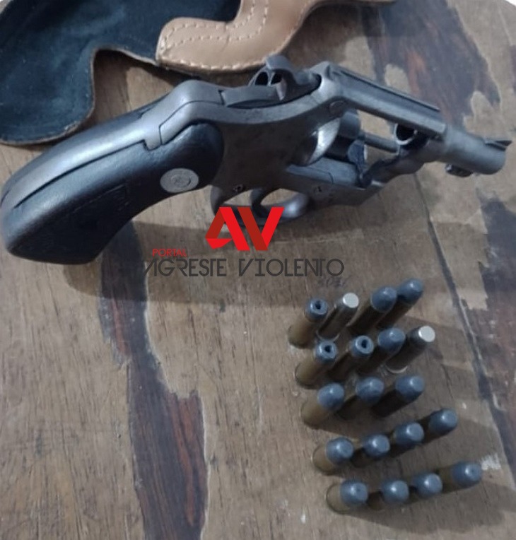 José Nadiel Teixeira, agrediu uma mulher, ele foi denunciado e quando abordadas encontrado munições em seu bolso, logo o efetivo militar conseguiu localizar o revólver calibre 38.