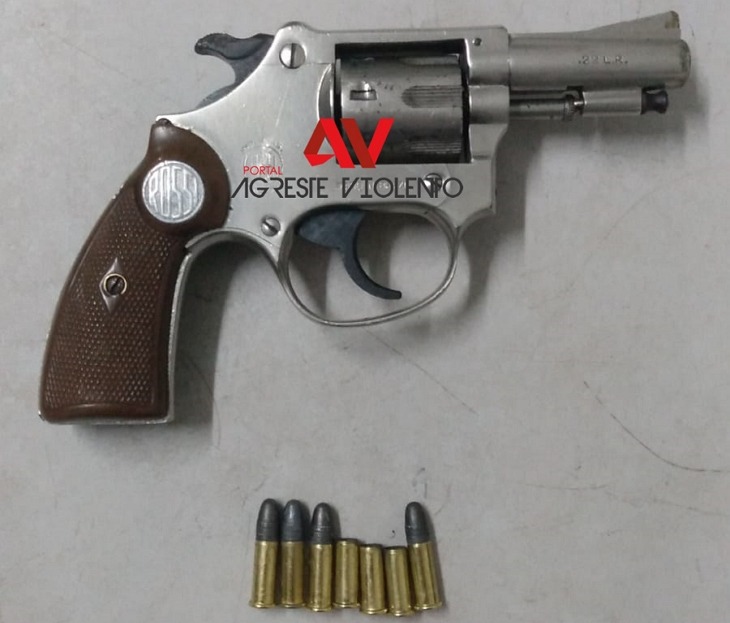 Ao ser abordado foi encontrado em seu bolso um revólver calibre 22, com munições intactas e deflagradas.