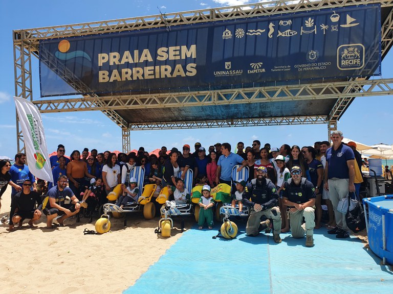 Foram 12 crianças, sendo 11 usuárias de cadeira de rodas e uma com microcefalia e mobilidade reduzida, que tiveram a oportunidade de ver o mar pela primeira vez. A ação aconteceu no Posto 07, na Avenida Boa Viagem, na arena do projeto social Praia sem Barreiras, realizado pela UNINASSAU, em parceria com a Prefeitura do Recife e Empetur.