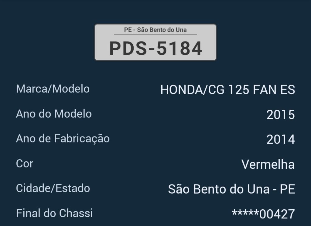 Dois indivíduos roubaram uma motocicleta por volta das 19h30 de segunda-feira, 18, em uma estrada da zona rural de São Bento do Una. O veículo possui placa PDS-5184, cor vermelha e é do modelo CG 125 Fan.