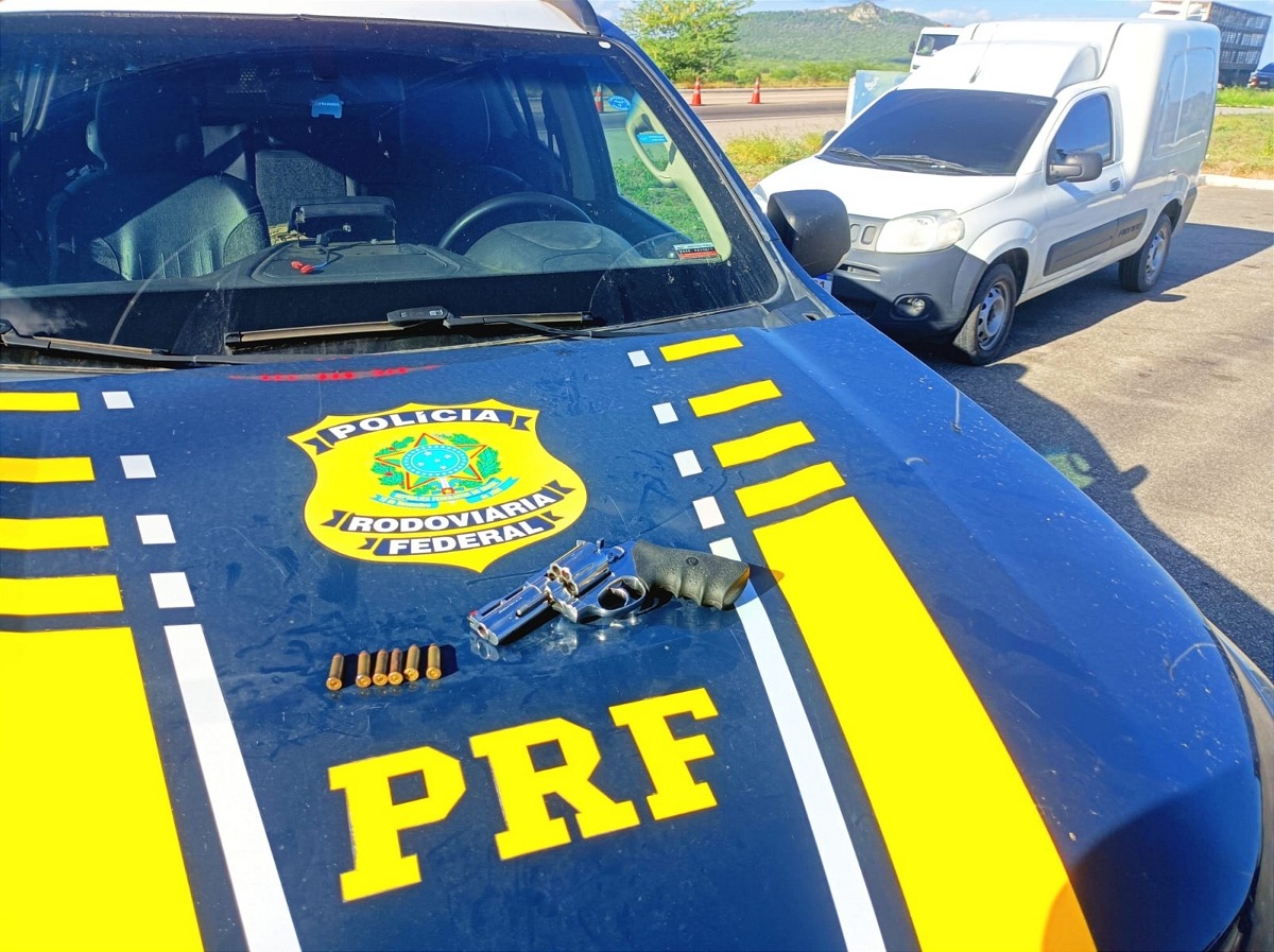 Foi constatada a ocorrência de roubo para o automóvel, registrado no ano de 2023, em Caruaru/PE. O motorista alegou ter pego o veículo por R$500 para entregar a uma pessoa desconhecida. Ele também declarou ter adquirido a arma em uma feira livre de Caruaru/PE para defesa própria.
