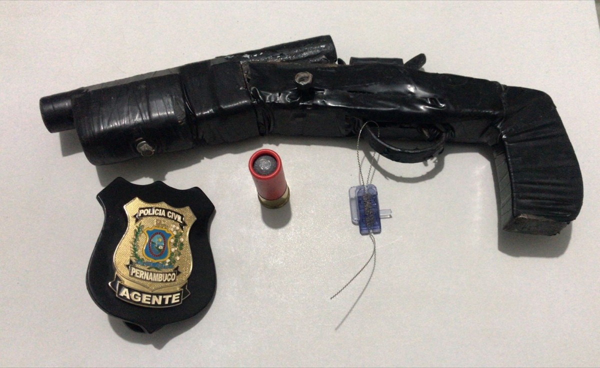 Os agentes realizaram a abordagem e, após deter o indivíduo, foram até a residência, onde localizaram a arma artesanal, municiada com um cartucho de calibre 12.