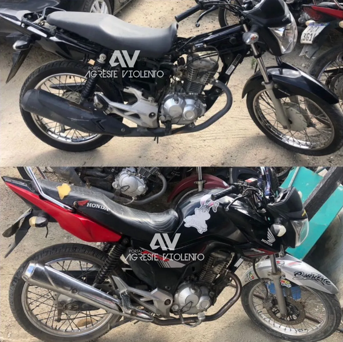 O efetivo do GATI apreendeu duas motocicletas em um desmanche no Sítio Bravo, em Garanhuns, na sexta-feira, dia 9. Um suspeito fugiu do local e está sendo procurado. As motos estavam sem placas, com os chassis raspados e pintadas de outra cor.