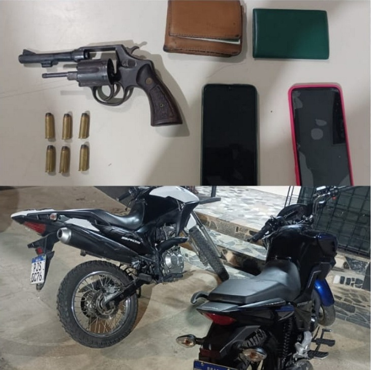 Após diligências, a equipe localizou o suspeito pilotando a motocicleta roubada. Após uma perseguição de alguns quilômetros, o suspeito foi detido. Durante a busca pessoal, foi encontrado em sua posse um revólver calibre 38, carregado com seis munições intactas, além de três celulares, sendo dois deles pertencentes à vítima do assalto, e uma carteira com documentos pessoais também da vítima.