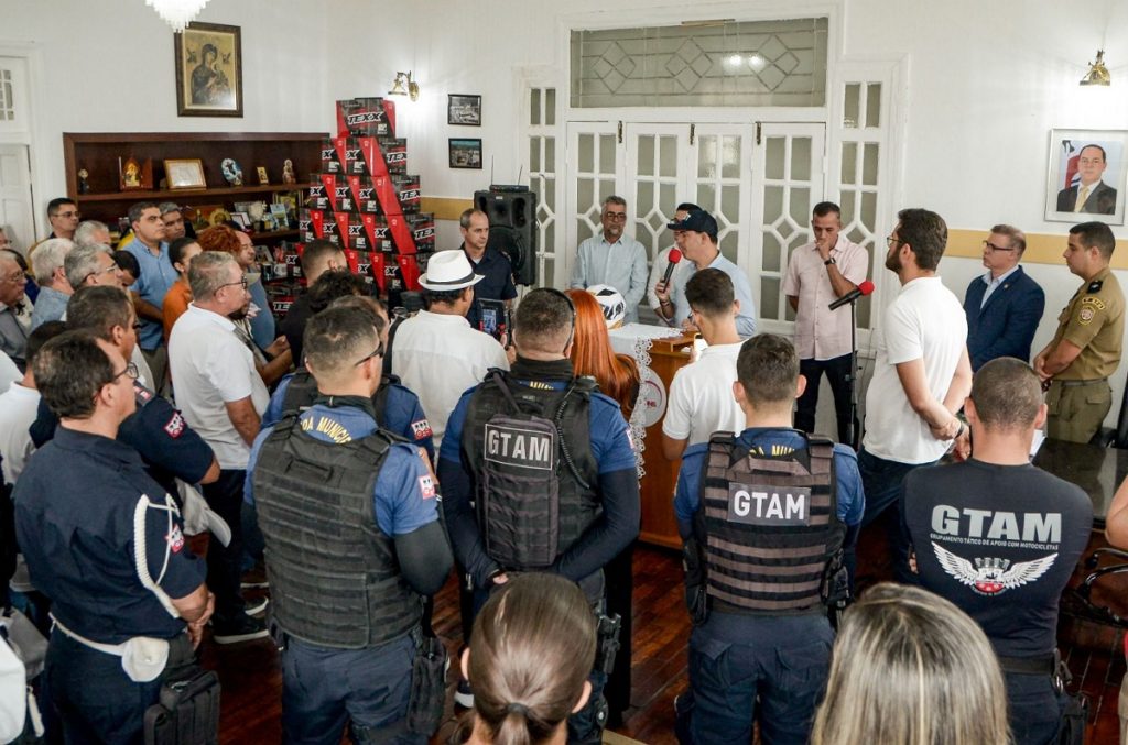 A solenidade aconteceu no gabinete do prefeito Sivaldo Albino, e contou com diversas autoridades, a exemplo do Delegado Regional, Dr. Marcos Omena, e o Ten PM Sávio, que representou o comando do 9° BPM. Para Rodolpho Melo, presidente da AMSTT, a população é a principal beneficiada. “Estamos reforçando a segurança do município, investindo quase um milhão de reais em novos equipamentos na Guarda Municipal, dando o suporte essencial que as equipes precisam, para que a população tenha mais segurança aqui em nosso município.” – disse o prefeito.
