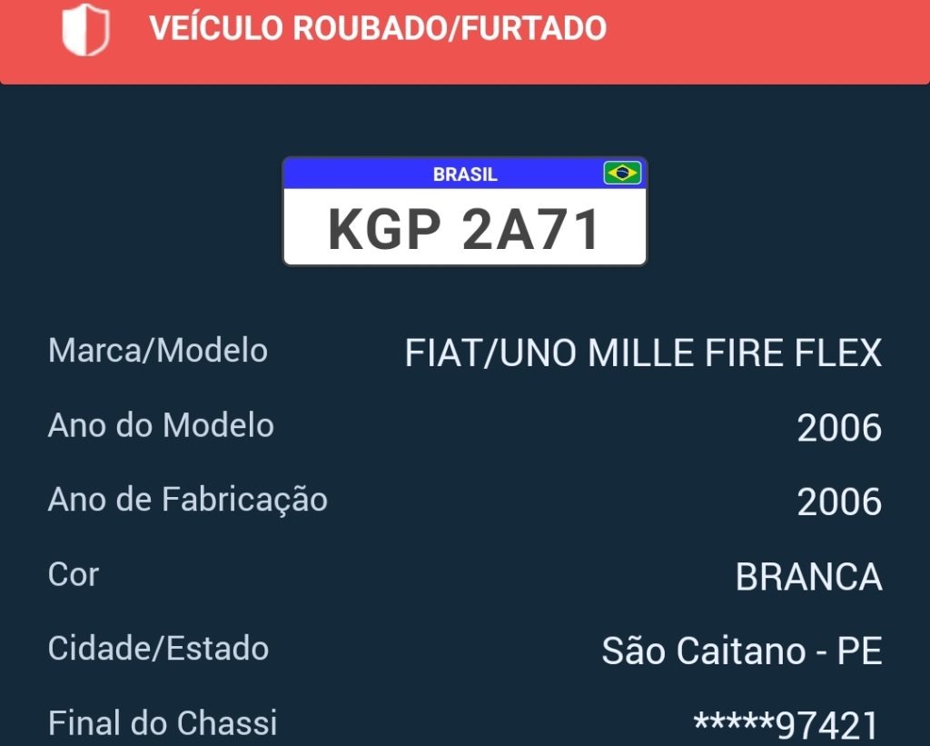 Um Fiat Uno, cor branca, placa KGP-2A71, foi furtado na madrugada desta segunda-feira (20), nas imediações da Rua João Pessoa, no município de Lajedo.