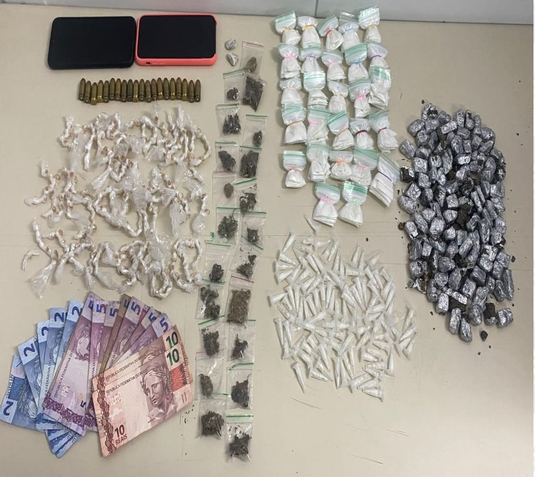 Com elas foram apreendidos 270 ziplocks e 100 pinos de cocaína, 246 pedras de crack, 121 invólucros de maconha, 20 munições calibre .40 e R$ 72,00 em espécie. Diante dos fatos, as suspeitas e o material foram conduzidos à Delegacia de Polícia de Boa Viagem, para adoção das medidas cabíveis.