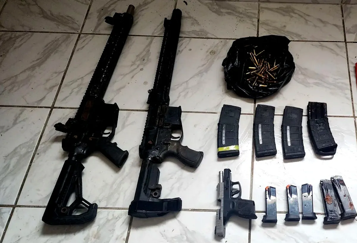 O suspeito foi detido por volta das 14h no loteamento São Severino, quando tentava sair em um veículo gol branco. Com ele, foram encontrados uma pistola cal. 40 carregada com 11 munições. Na residência do suspeito, foi encontrada uma espingarda cal. 556, mais de 100 munições de calibre 556 e 45, além de diversos equipamentos eletrônicos.