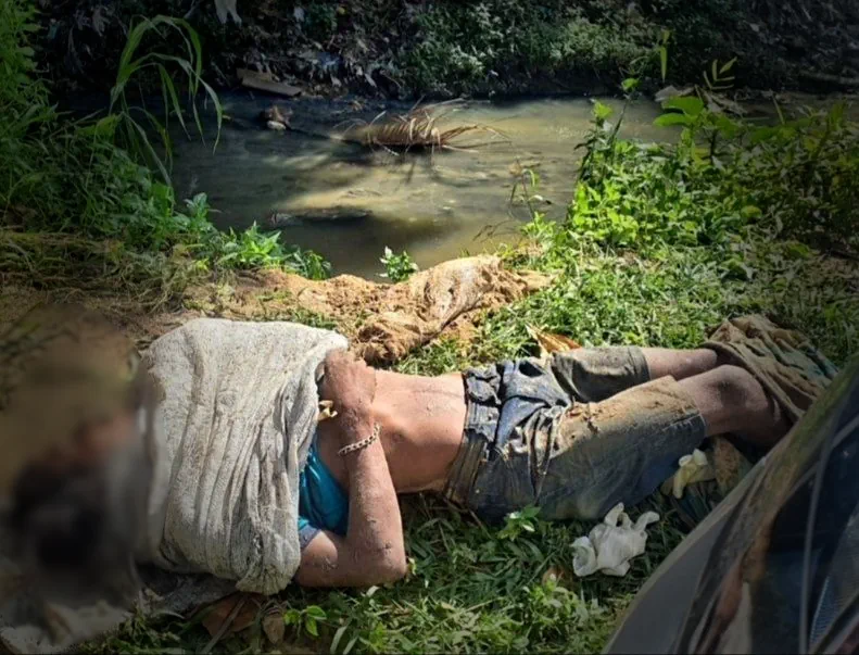De acordo com a polícia, a vítima apresentava lesões graves provocadas por arma branca do tipo facão, na região da cabeça e outras partes do corpo.