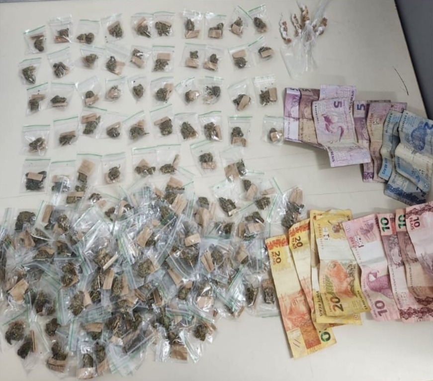 Com ele, foram apreendidos 192 invólucros de maconha, 25 pedras de crack e R$ 156,00 em espécie. O envolvido e todo o material foram apresentados na delegacia do bairro, para a tomada das medidas cabíveis