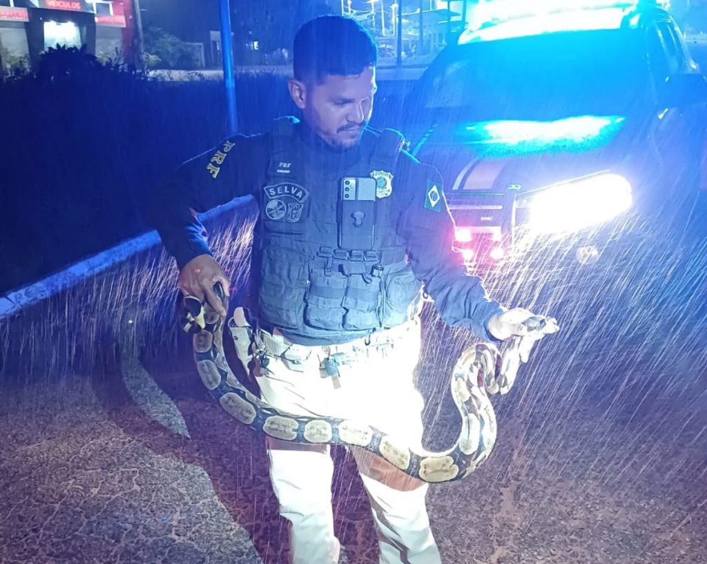 Equipes da PRF realizavam uma fiscalização de segurança viária, quando avistaram a primeira cobra prestes a atravessar a rodovia. Um dos policiais que possui prática em resgates deste tipo, realizou o manejo da cobra com o devido cuidado e conseguiu levar o animal até um local seguro, fora da rodovia.