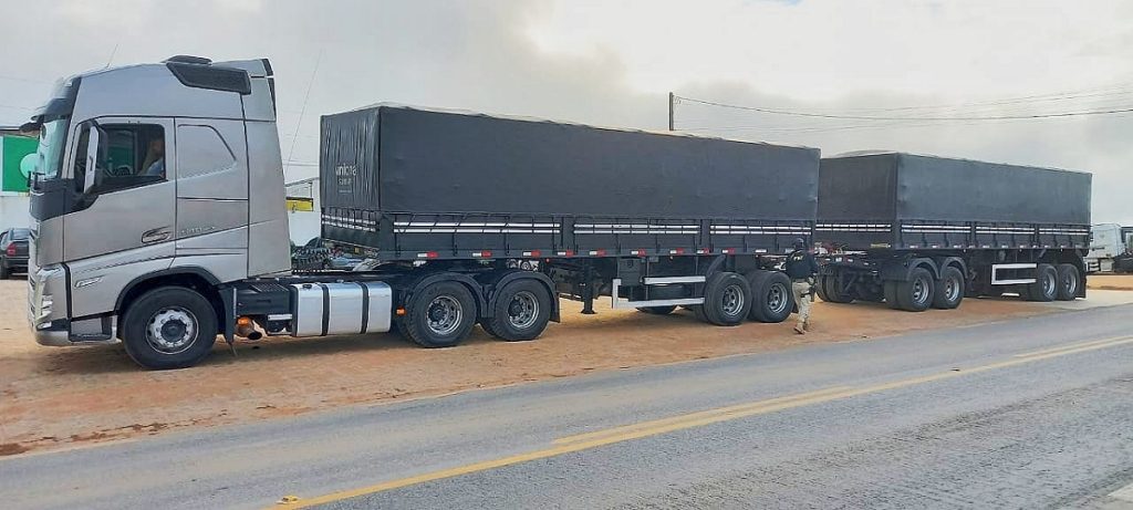 Durante operação de segurança viária, um caminhão que transportava milho foi abordado. Ao total, a carga pesava mais de 67 toneladas, mas estava com 20 toneladas a mais do que estipulava a documentação entregue pelo condutor.