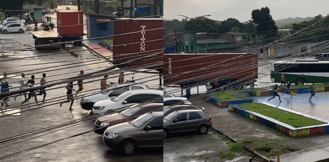 Em imagens que circulam nas redes sociais e foram gravadas por moradores do entorno do local, é possível observar o momento em que os adolescentes, alguns deles portando armas brancas, arrombam um dos portões que dão acesso ao local.